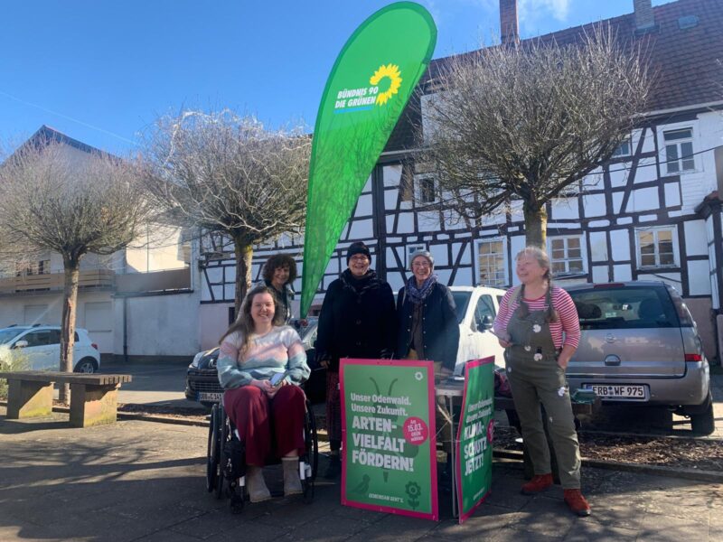 Am 25. Februar haben sich einige Bad Königer Grüne zusammengetan und ein Wahlstand auf der Piazza vor der Wandelhalle aufgebaut. Da gerade Markttag war und schönes Wetter, konnten wir viele Spaziergänger und Einkäufer mit unserem Werbematerial versorgen. Auch eine Bromischer Grünen-Delegation hat uns besucht. Die nächste Aktion findet am 4. 3. 2026 um 8 Uhr am Bahnhof statt – Herzliche Einladung!